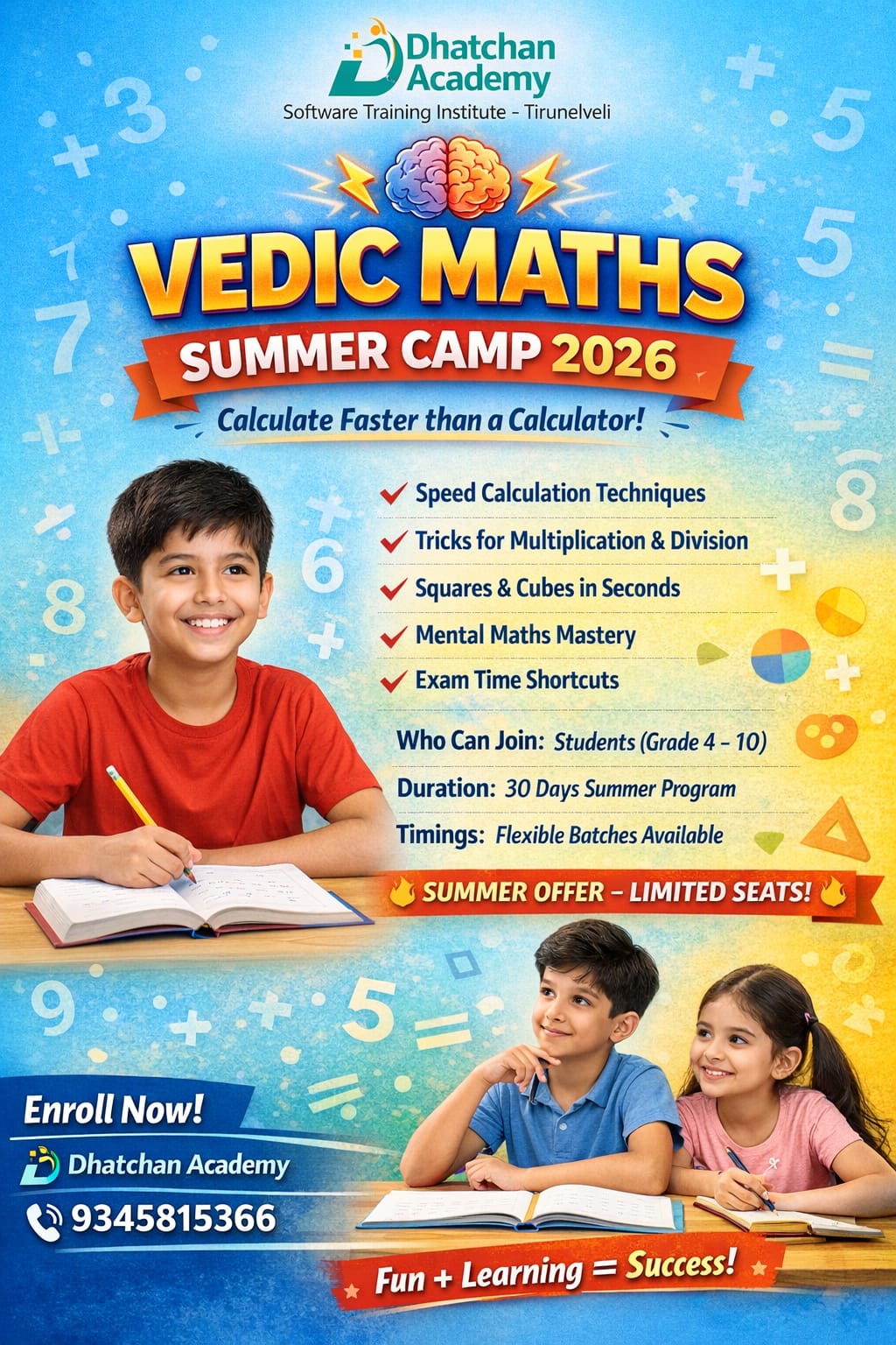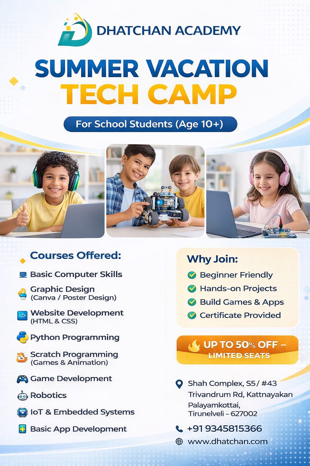 Dhatchan Academy offers specialized tuition for +1 and +2 (HSC) students across State Board, CBSE and International curriculums. Our goal is to simplify complex computer science concepts and help students build a strong foundation in programming and theory, aligned with their board requirements.