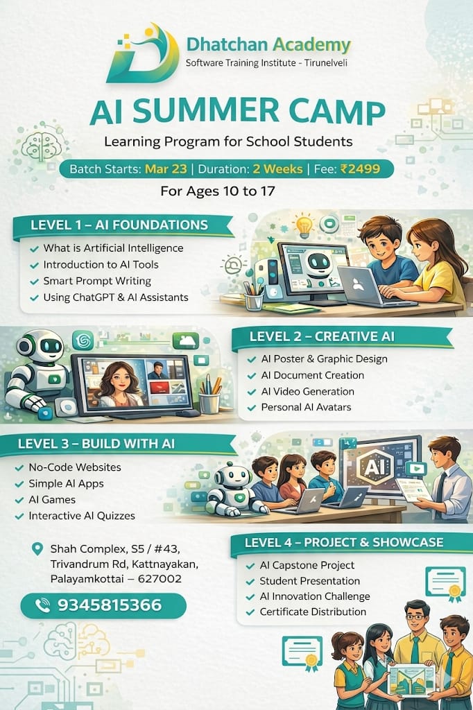 Dhatchan Training Institute, based in Tirunelveli, is a transformative initiative dedicated to fostering the IT experts of tomorrow. Our primary goal is to elevate students' potential in the field of information technology by providing a comprehensive curriculum led by seasoned IT professionals. Founded in 2022, Dhatchan Training Institute prides itself on offering in-depth, hands-on training and current industry insights. Our proficient trainers are committed to delivering the highest quality education, helping students to make substantial contributions to the IT sector.